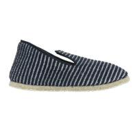 Charentaises été pour femme, rayées de couleur Marine. Un intérieur en éponge léger et respirant et une semelle épaisse et résistante. Classiques et classieuses.