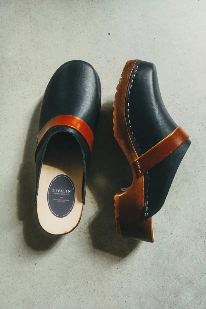 Alliez style et authenticité avec ce sabot Rivalin, qui revisite le sabot suédois dans une version bretonne sobre et racée. Le cuir pleine fleur bleu marine, associé à une bride contrastée naturelle et à l’embossage discret du logo R, révèle un modèle élégant et raffiné. Cette saison, nos sabots s’enrichissent d’un empiècement en cuir embossé au nom de Rivalin, apportant une touche de raffinement et une ligne résolument modernisée.
